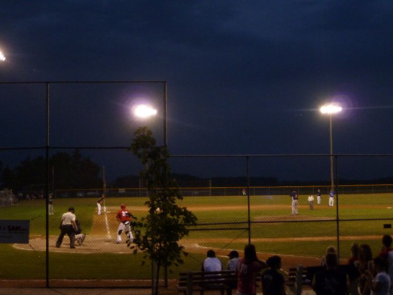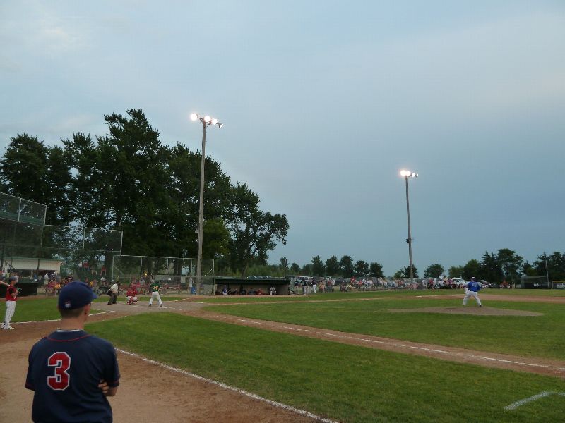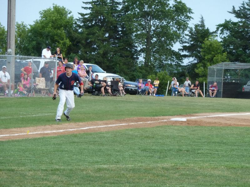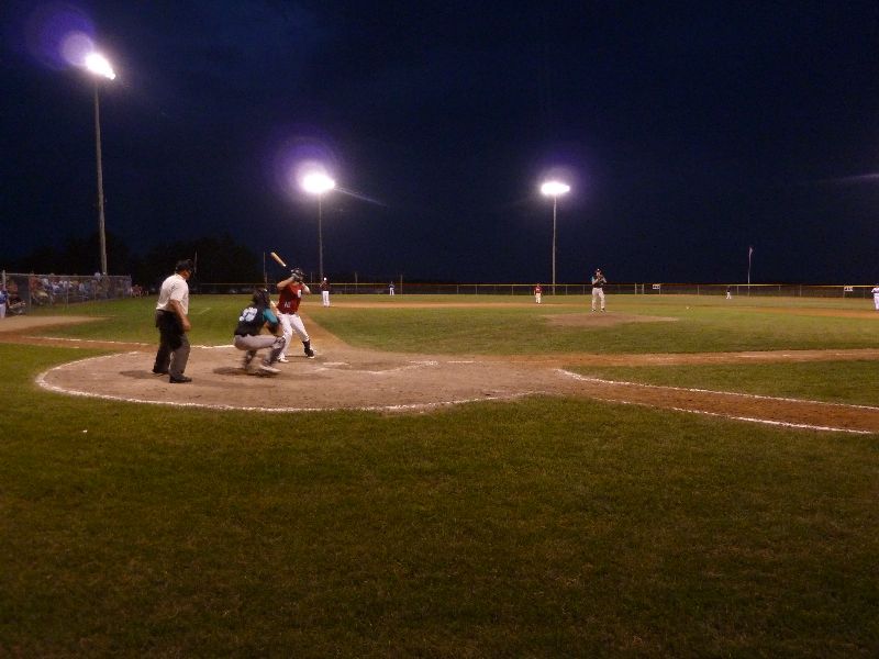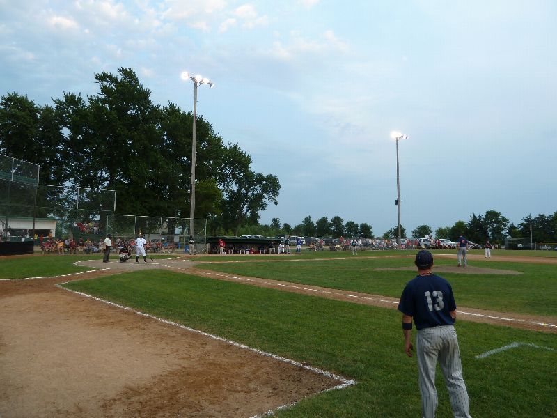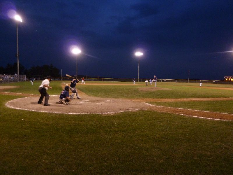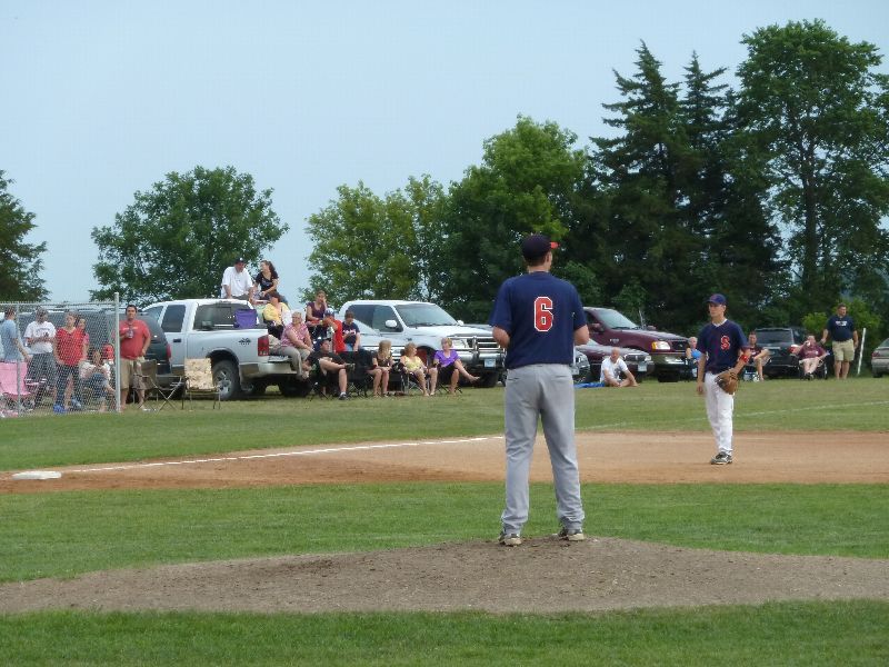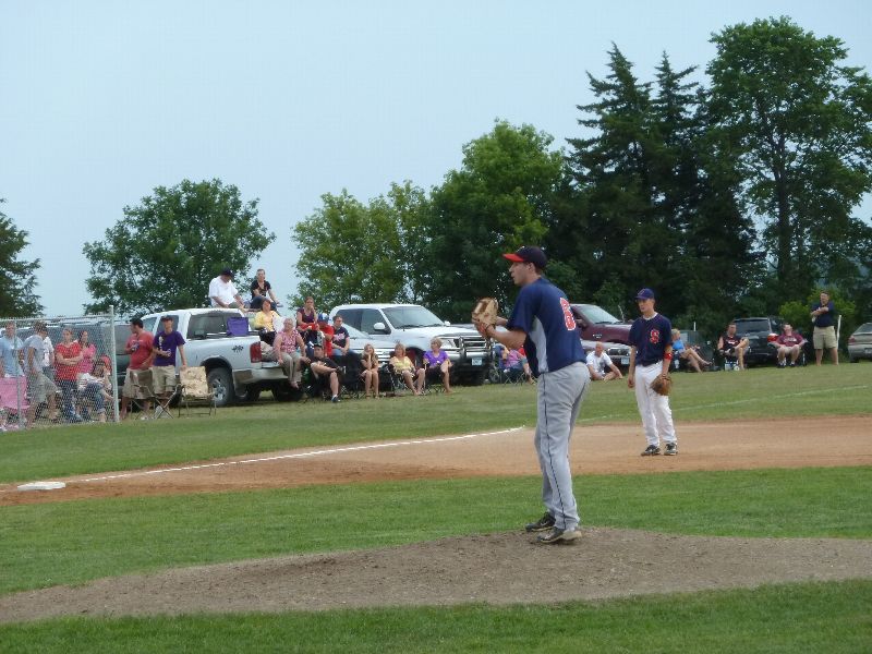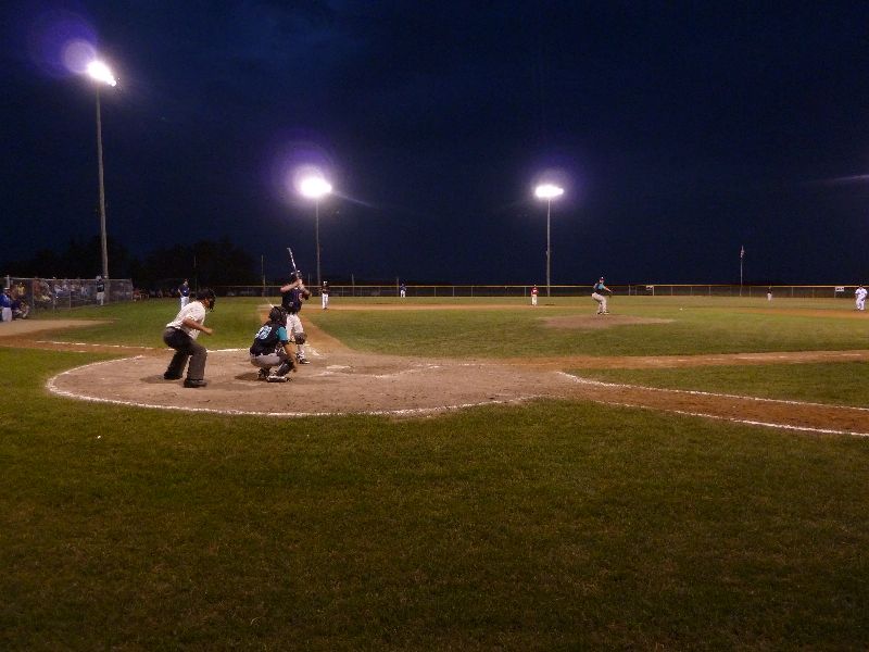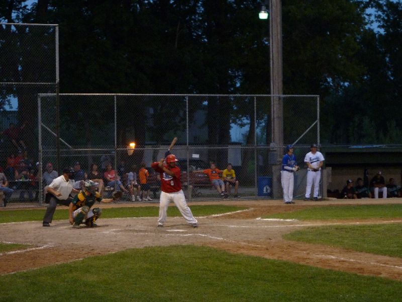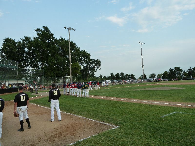After Portner's tough first inning of work, he buckled down to work through the seventh, allowing just one more base runner on a two-out walk. A pair of walks from Erich Panitzke haunted him when Zach Hoffmann crushed a three-run bomb near the batting cage beyond the leftfield fence, making the score 14-10. Austin Kretsch allowed a pair of runs in the ninth to push the visitor's score to sixteen. Tony Stadtherr came on in relief for the Americans to work a pair of scoreless innings and make the final 16-10.