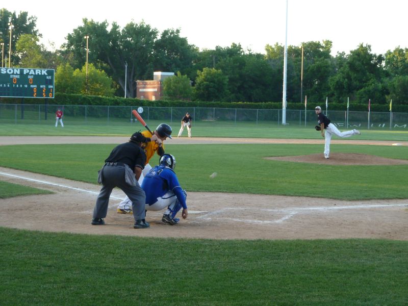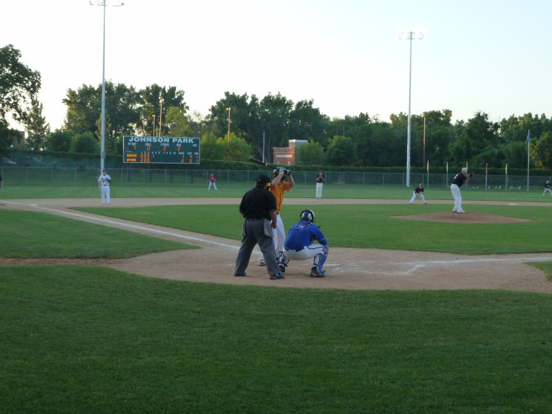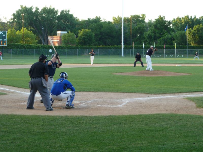 The players and fans of the Tomahawk East League converged on Johnson Park in New Ulm on Wednesday night for the annual All-Star Game. The contest pitted the American Division All-Stars against the National Division All-Stars. Due to the game's close proximity to the July 4th holiday, several teams struggled to find players willing and able to participate in the contest. Nonetheless, all teams in the league were represented and they treated the nice crowd to a good ballgame, completed in just under two hours. Each team allowed just one earned run, but the Nationals took better advantage of their opponent's miscues and were victorious 5-3.