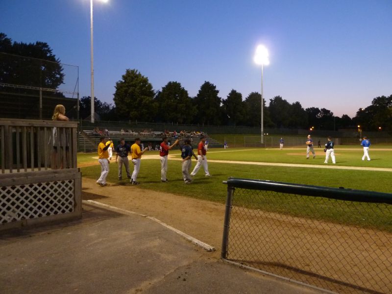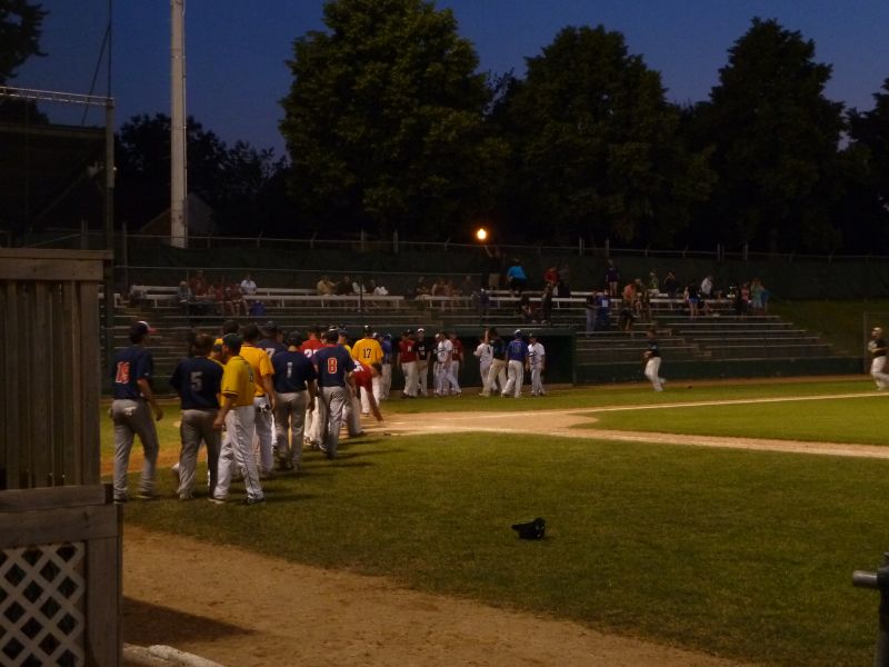 Both team's went to the bullpen in the third with Adam Sellner from Stark and David Krause of St. James each posting scoreless innings for their respective clubs. Then Sellner had a tough top of the fourth, issuing three free passes, including a bases loaded walk. Krause helped himself when he legged out an infield single that put the Americans up 3-2.