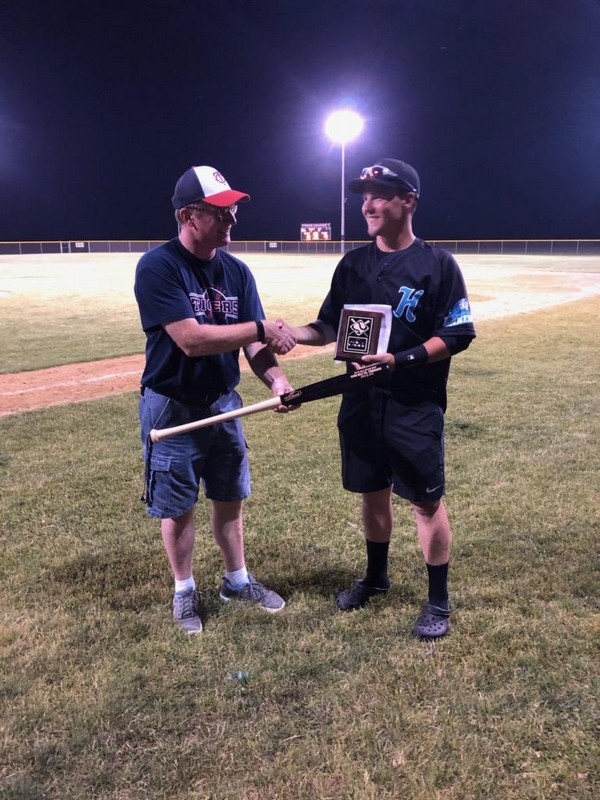 The MVP Award went to Hanska's Cole Wellmann who gave the Tomahawk East life with his two-run homer. He also pitched a three-up and three-down inning and played first and third bases as players moved to and from the mound. Both teams used a one pitcher per inning plan to not overwork any team's hurlers. Gibbon's Nolan Huiras earned the win striking out the side in the top of the tenth after a lead-off double. Willmar's Jack Baumgart was tagged with the loss, allowing one unearned run in the bottom of the tenth. New Ulm's Judd Davis, Springfield's Flock and Stark's Haala led the way at the plate with two hits each.