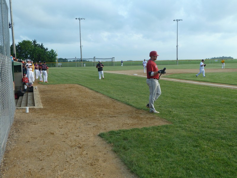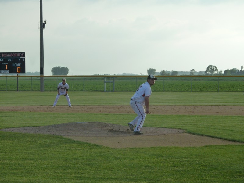 The Corn Belt took advantage of a lead-off walk in the top of the third to get on the scoreboard. The visitors cut the lead to one when Shawn Dollerschell of the Bird Island Bullfrogs ripped a 2-out three-run homer, making the score 5-4.
